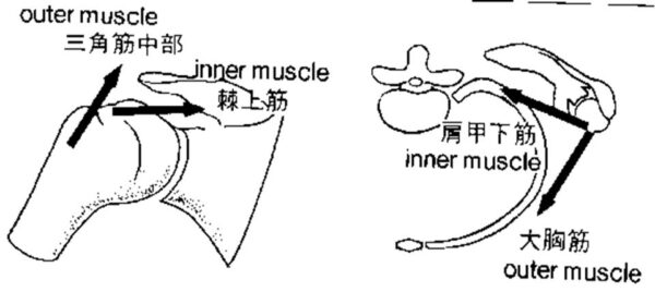 棘上筋は体に近い範囲で、外転にも内転にも働きます。
