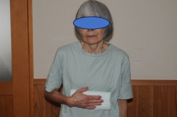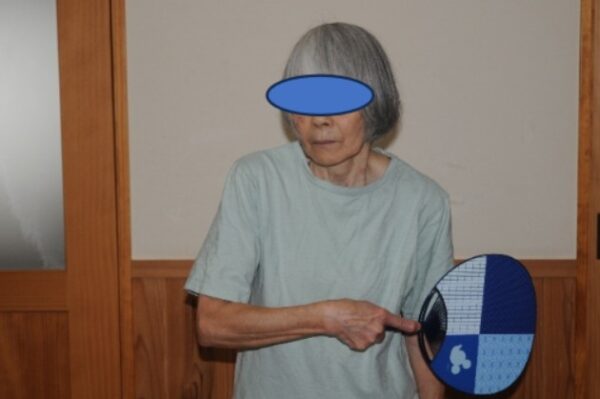 肘を90°曲げうちわを手で持ち仰ぐ(図7)。