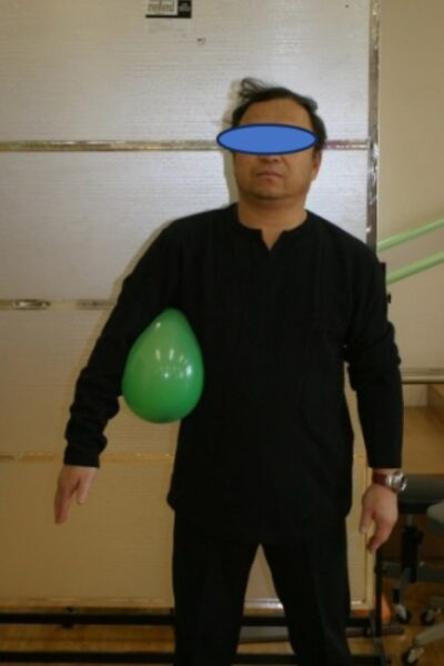 以下の運動は力を入れすぎるとouter muscleも働いてしまいます。従って力を入れずに頑張らず軽い気持ちで行います。三角筋や大胸筋を指で触りながら収縮を起こさない程度の強さで行うと力の入れ具合がわかりやすいです。